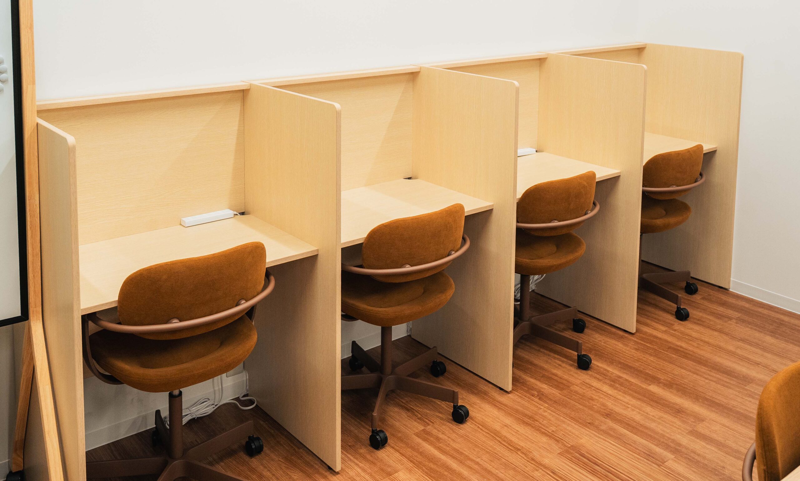パーテーション付きで、集中してワークに取り組めるスペースもあります。
