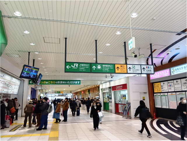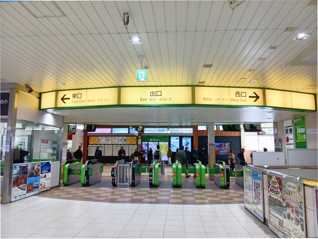 高崎駅東口の出口を出ます。上信電鉄をご利用の場合には、東西自由通路にて高崎駅東口に出ます。