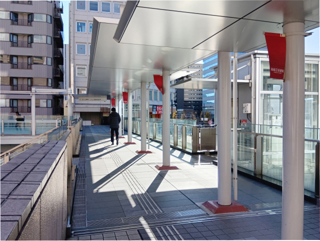 ヤマダ電機を左手に歩行者デッキを直進します。
