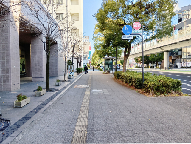 高崎市タワー美術館の建物まで直進をしたら、道なりに右に曲がります。