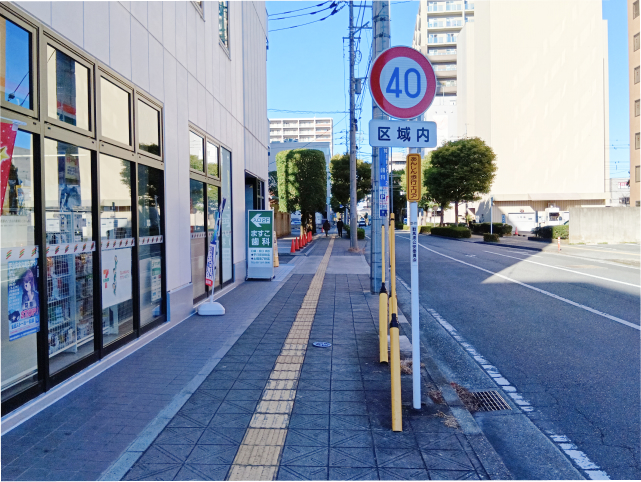 交差点まで直進をしましたら、左手にセブンイレブンが見えてきます。信号は渡らずに左折をします。