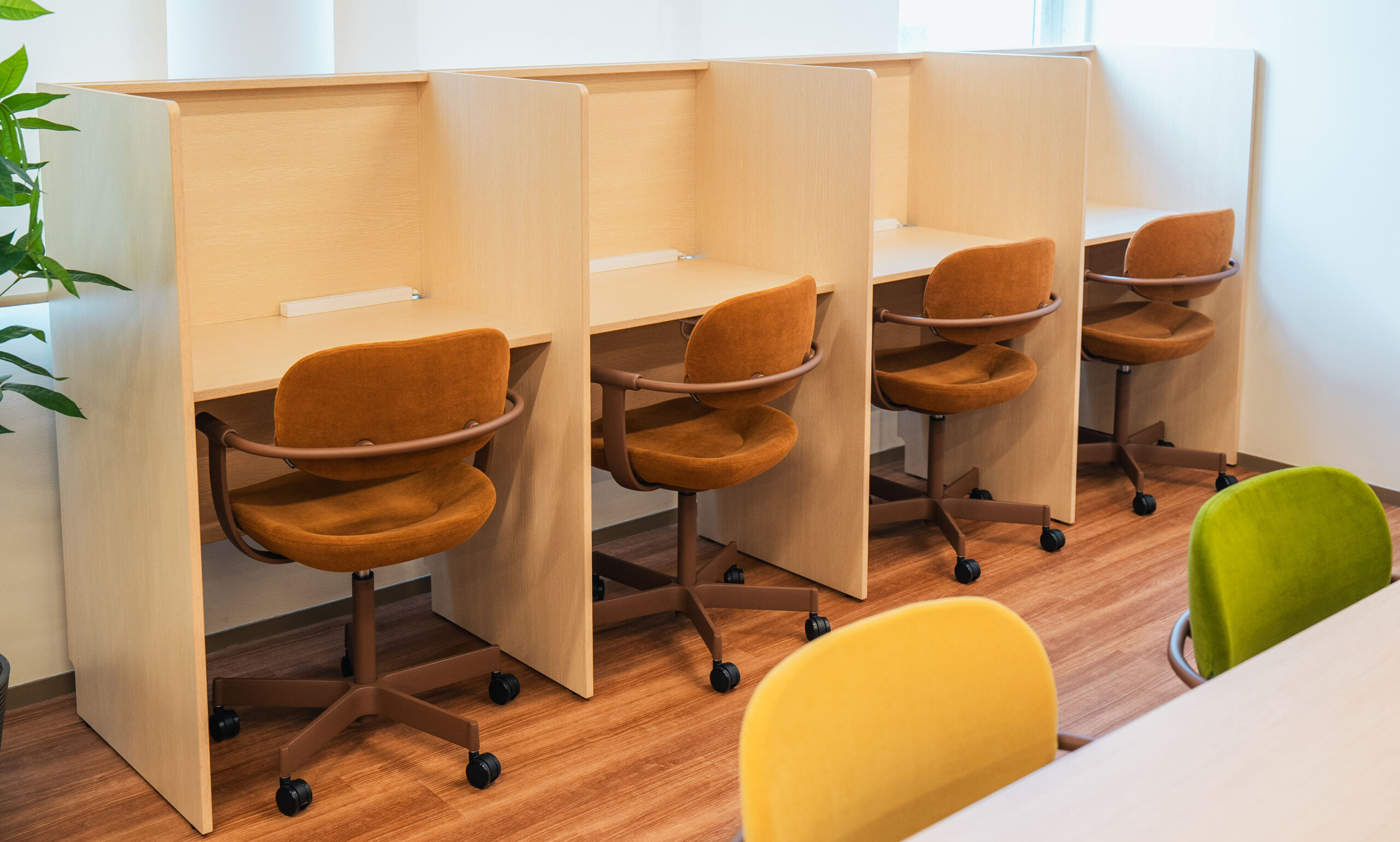 パーテーション付きで、集中してワークに取り組めるスペースもあります。