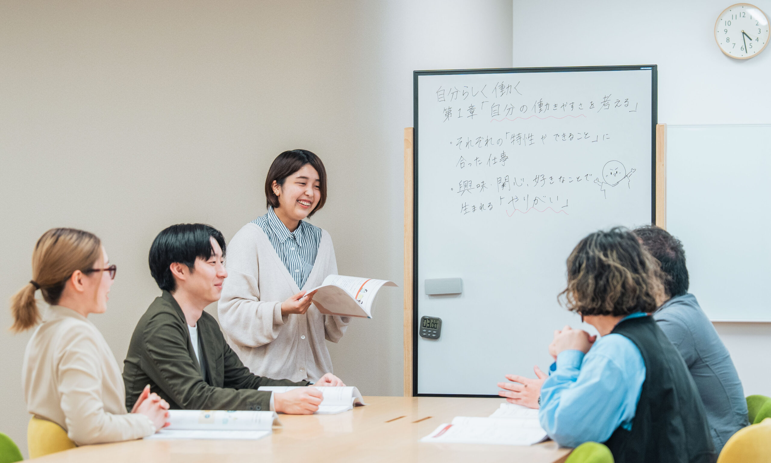 プログラムを受講し、自己理解を深めたり、職場での困りへの対処法を身につけたりします。