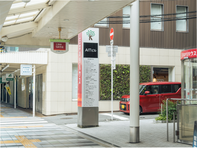 「関西みらい銀行」と「三井のリハウス」の間にある交差点を左折します。※「あべのば」のピンクの看板を目印に左折
