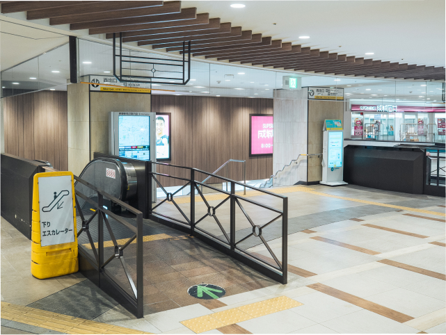 階段を下りたら、「商店街」に向かって横断歩道を渡ります。