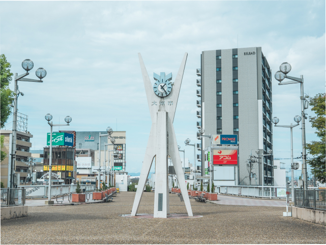北側出口を出て直進します 「住道駅前時計台」の横を通過します