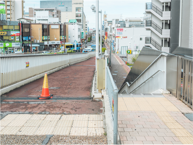 スロープ(段差のない傾斜面の通路)もしくは、階段を下ります