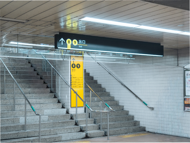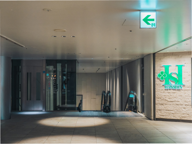 第3ビルに入り、階段やエスカレーター、エレベーターなどで2階に上がります