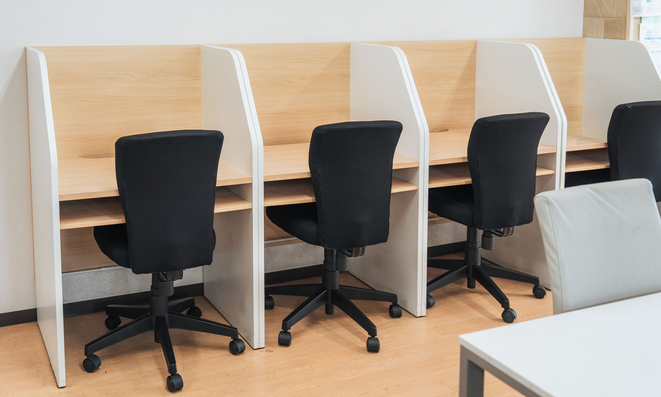 周りを気にせず話ができる相談室も準備しています。本番を意識した面接練習などにも最適です。