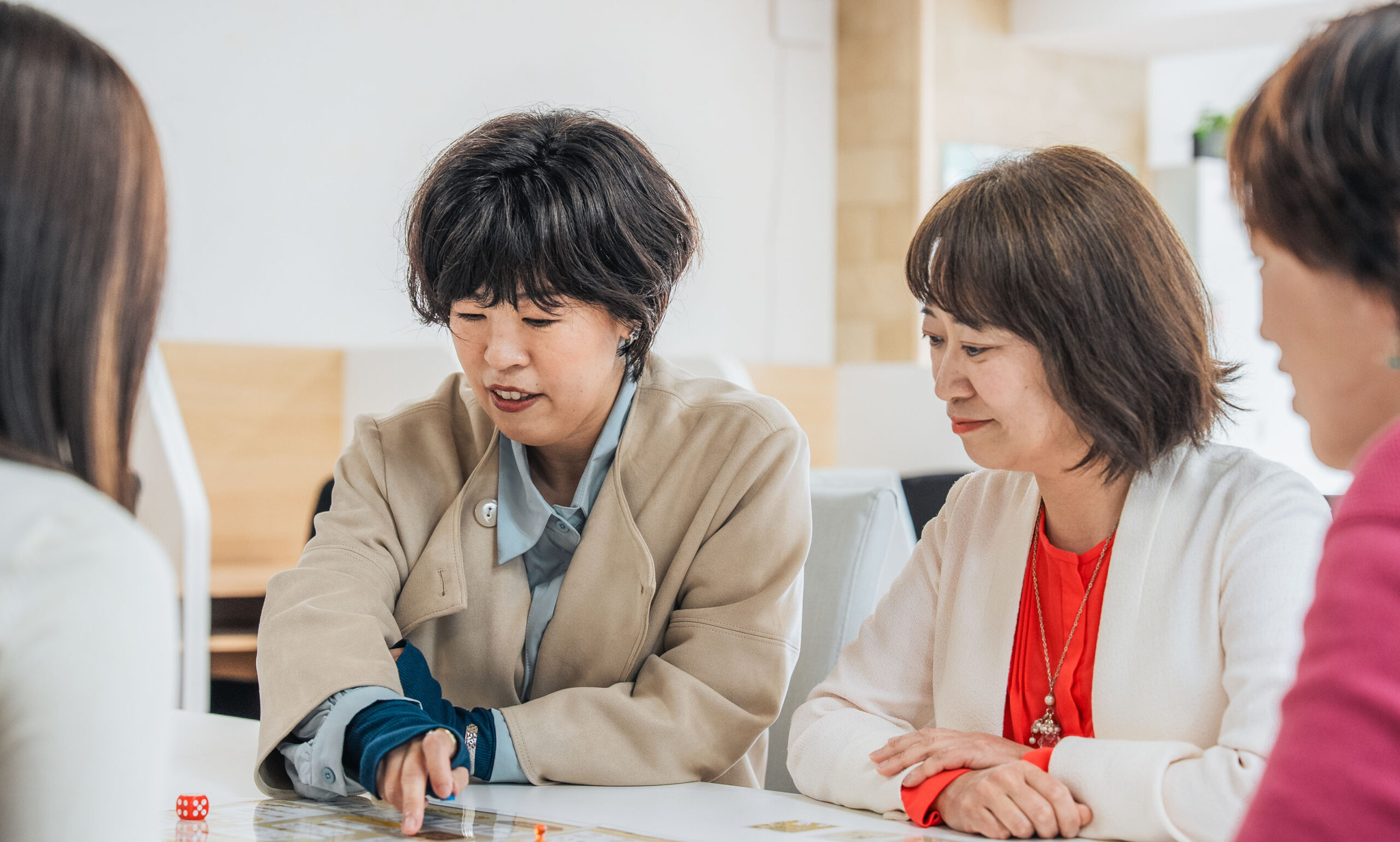 グループワークでは対話を楽しみながら、新たな気付きを得られます。丁寧なサポートがありますので、安心してご参加ください。