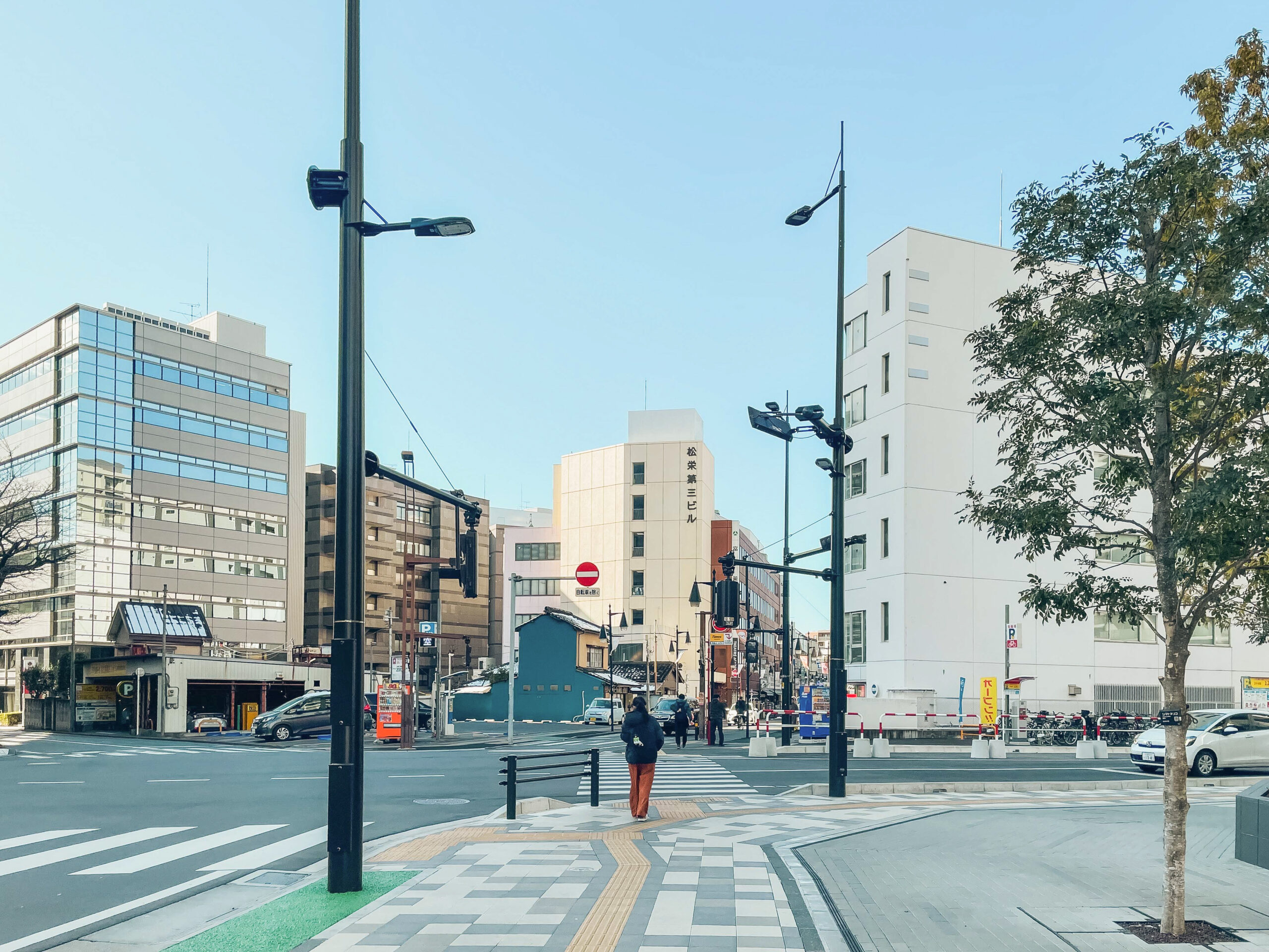 「松栄第三ビル」を左手に見ながら直進します。
