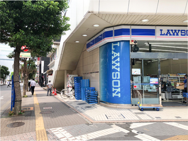 階段を降りた先をローソン側に右折し、ソニックシティビルの方へ進みます。