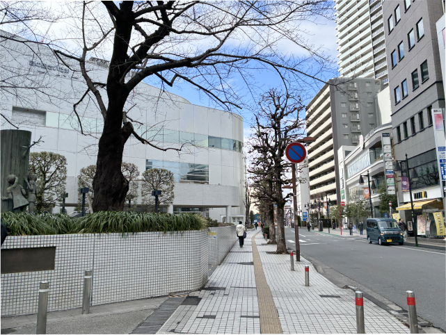 ソニックシティ前の交差点を渡り右手道なりに進み、直進して大宮サクラスクエアを通過します。