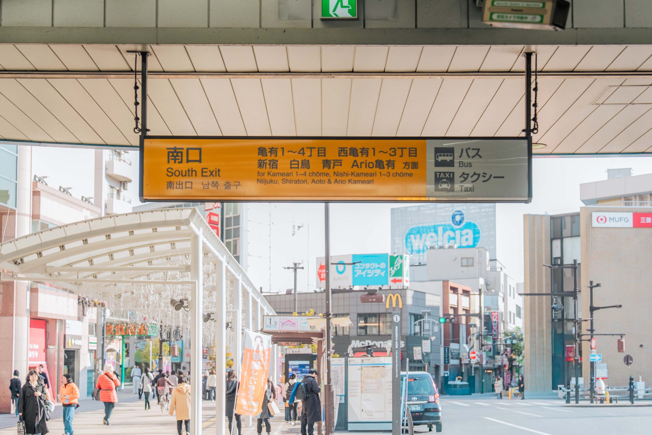 JR常磐線「亀有駅」で下車し、改札を出て、南口に進みます。