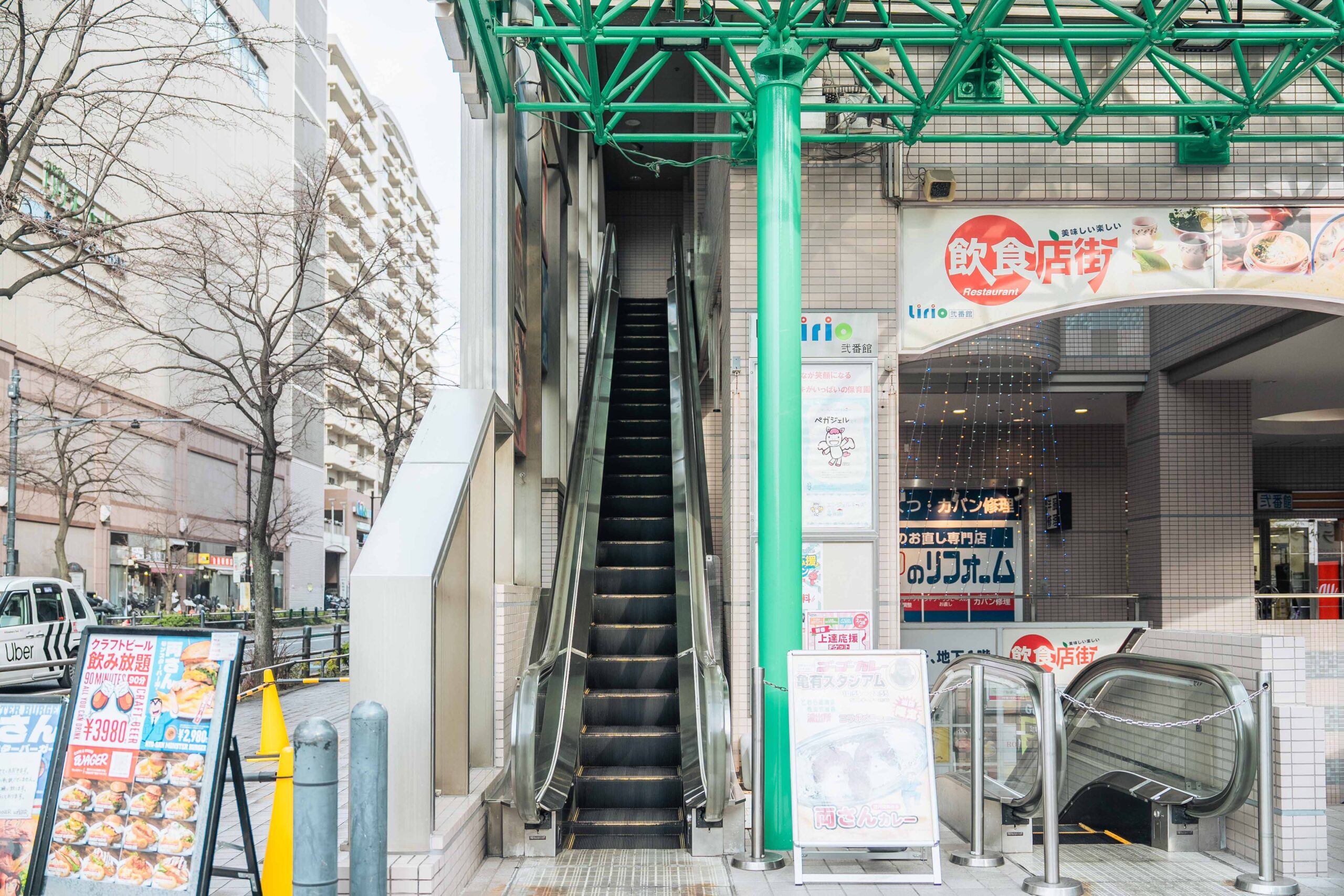 信号を渡ると、左側に「リリオ弐番館」があり、エスカレーターで2階に上がります。