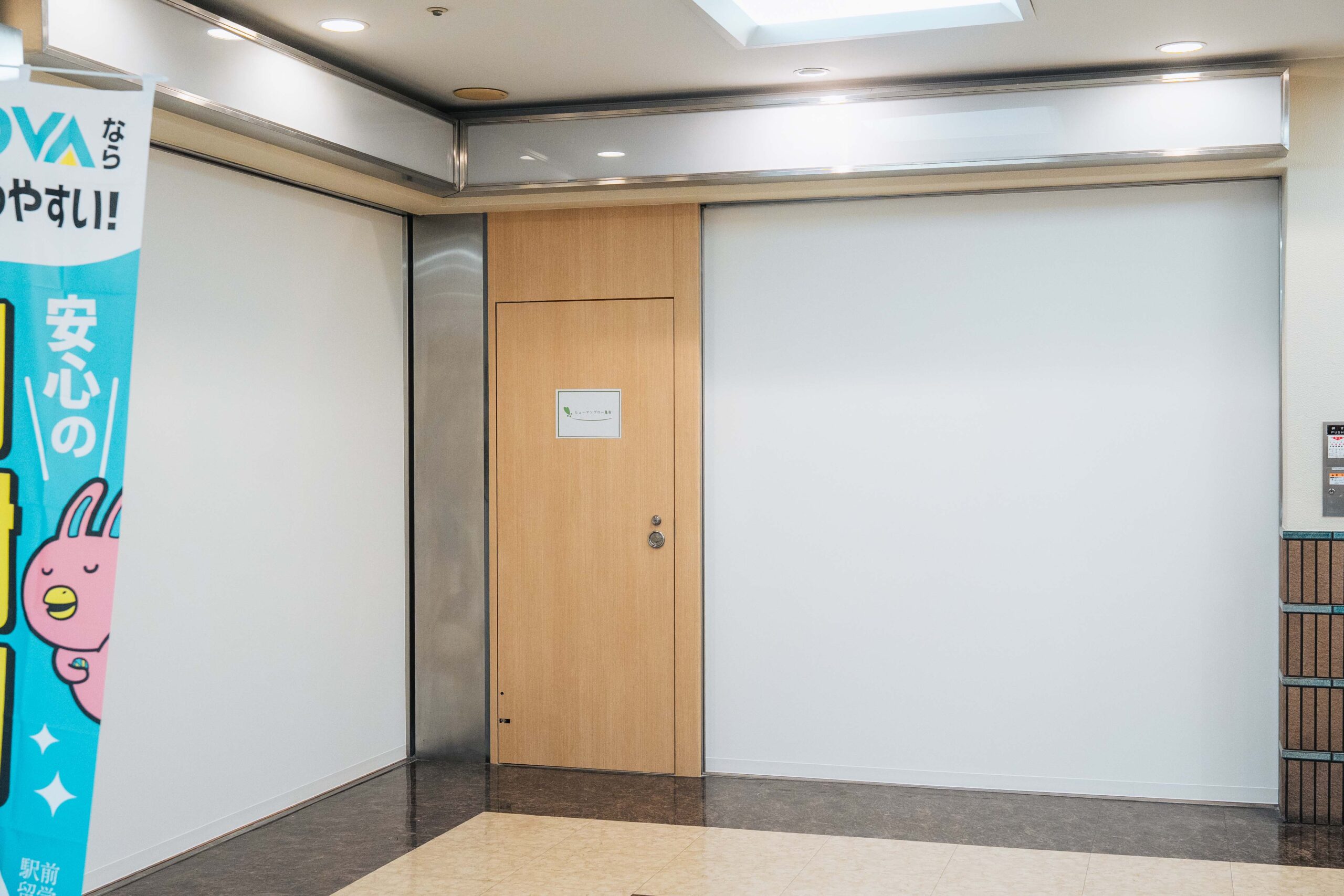 203号室が事業所になります。左隣に「駅前留学NOVA」があります。