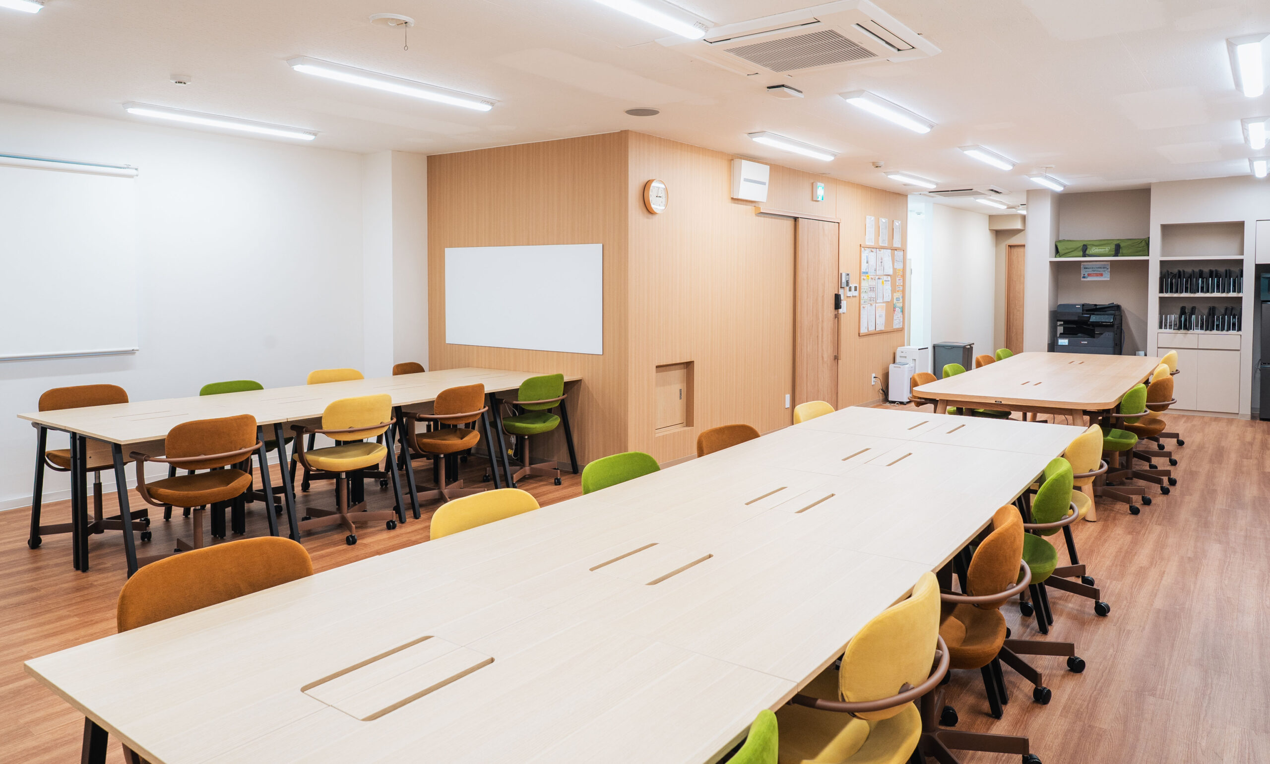 木目調を基調とした温かな空間。日々の訓練を気持ちよく快適に過ごしていただけます。