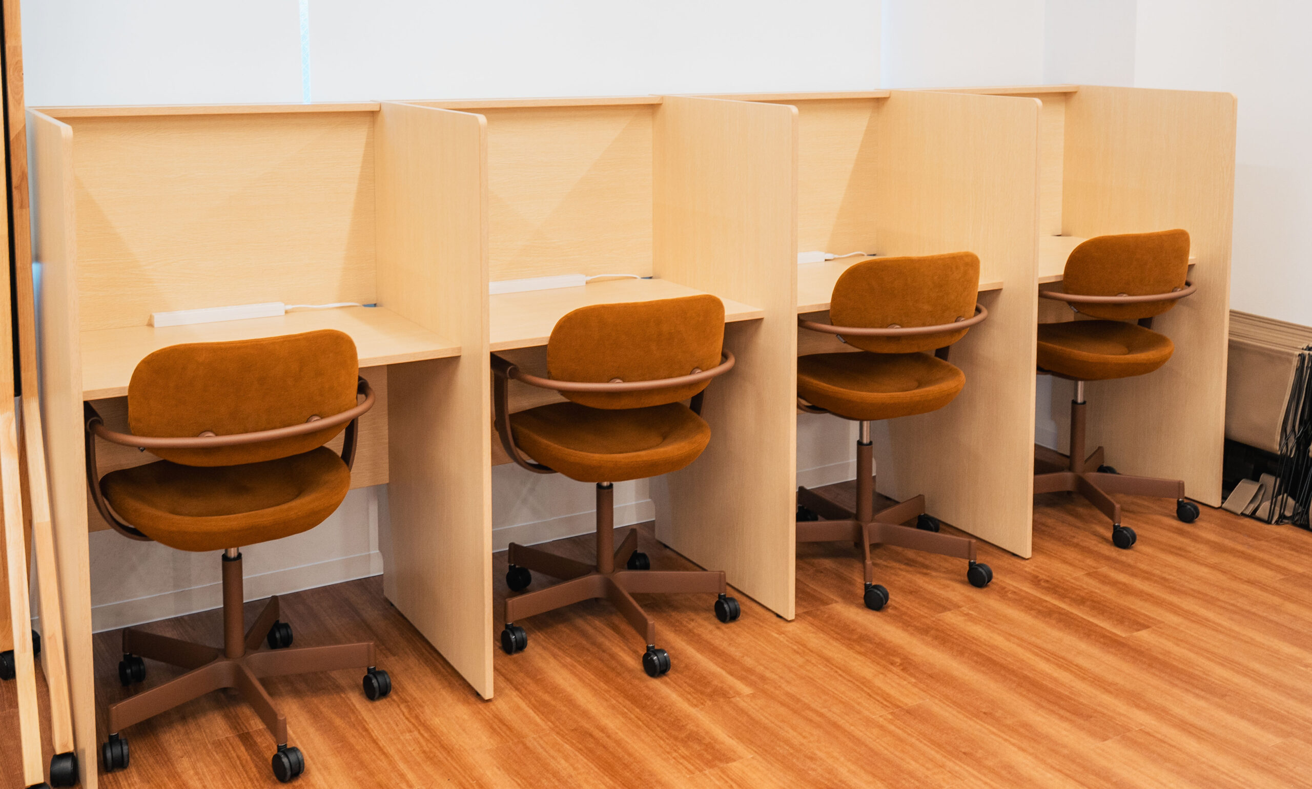 パーテーション付きで、集中してワークに取り組めるスペースもあります。