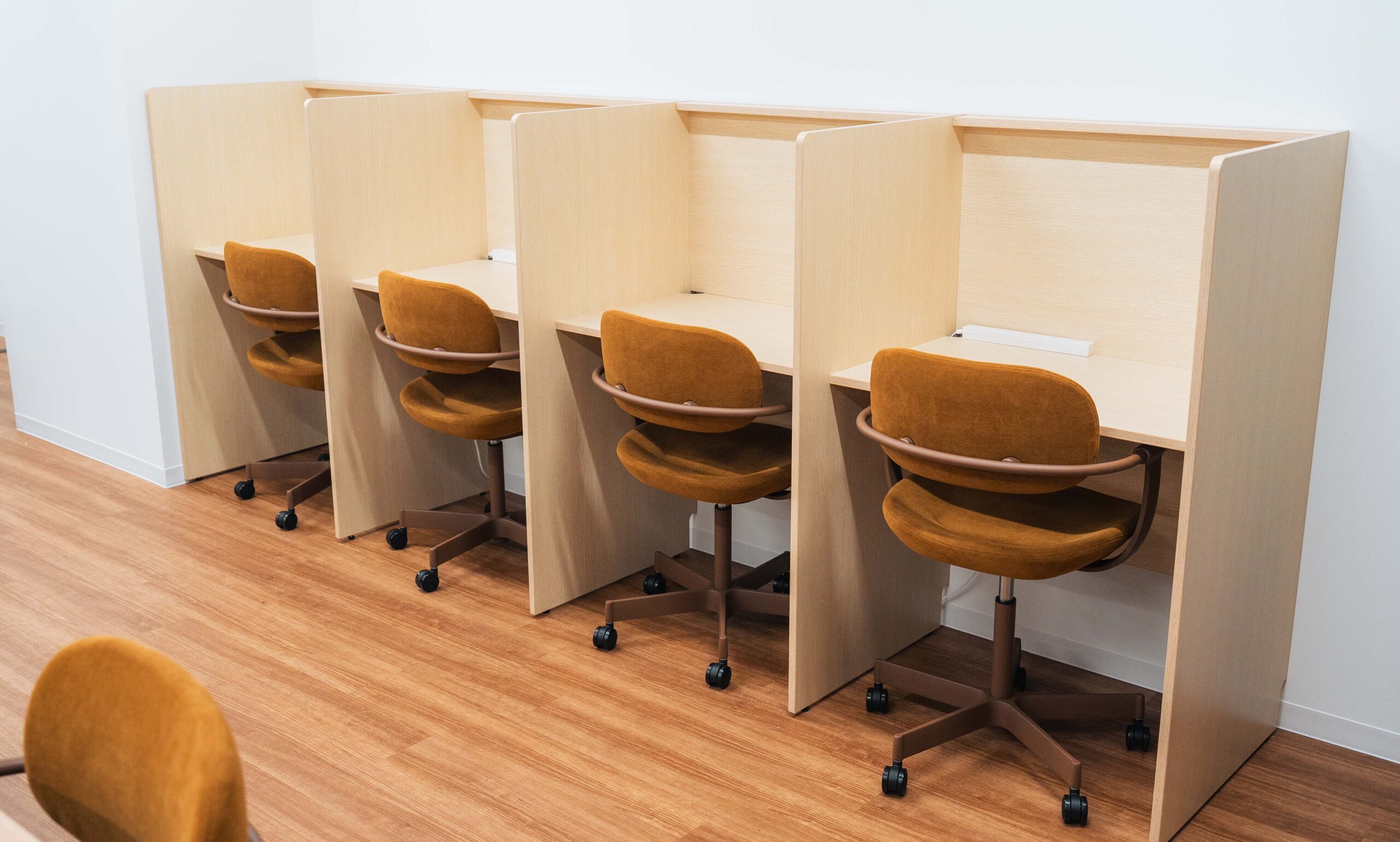 パーテーション付きで、集中してワークに取り組めるスペースもあります。