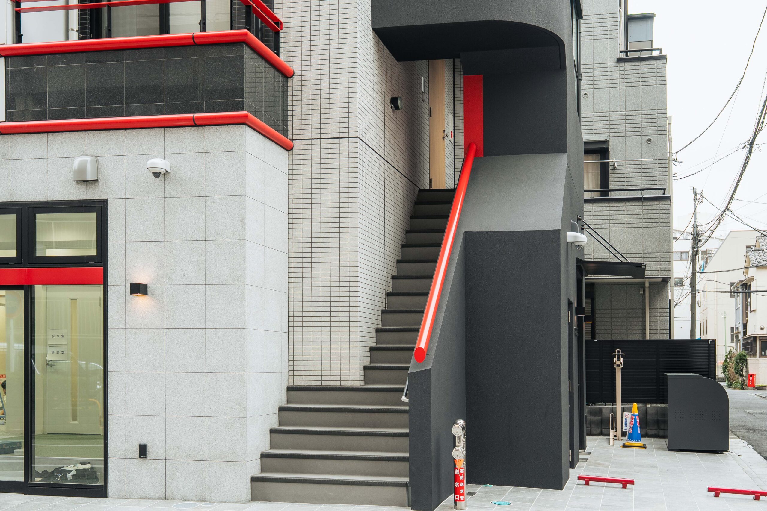 こちらの階段を上がって2階に事業所がございます。