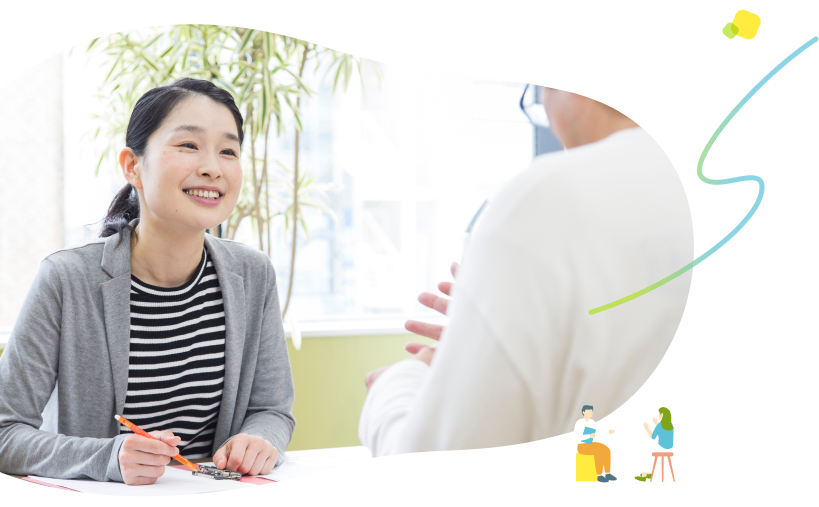 支援スタッフがあなたの悩みや希望を伺いながら、一人ひとりに寄り添ったサポートをします。